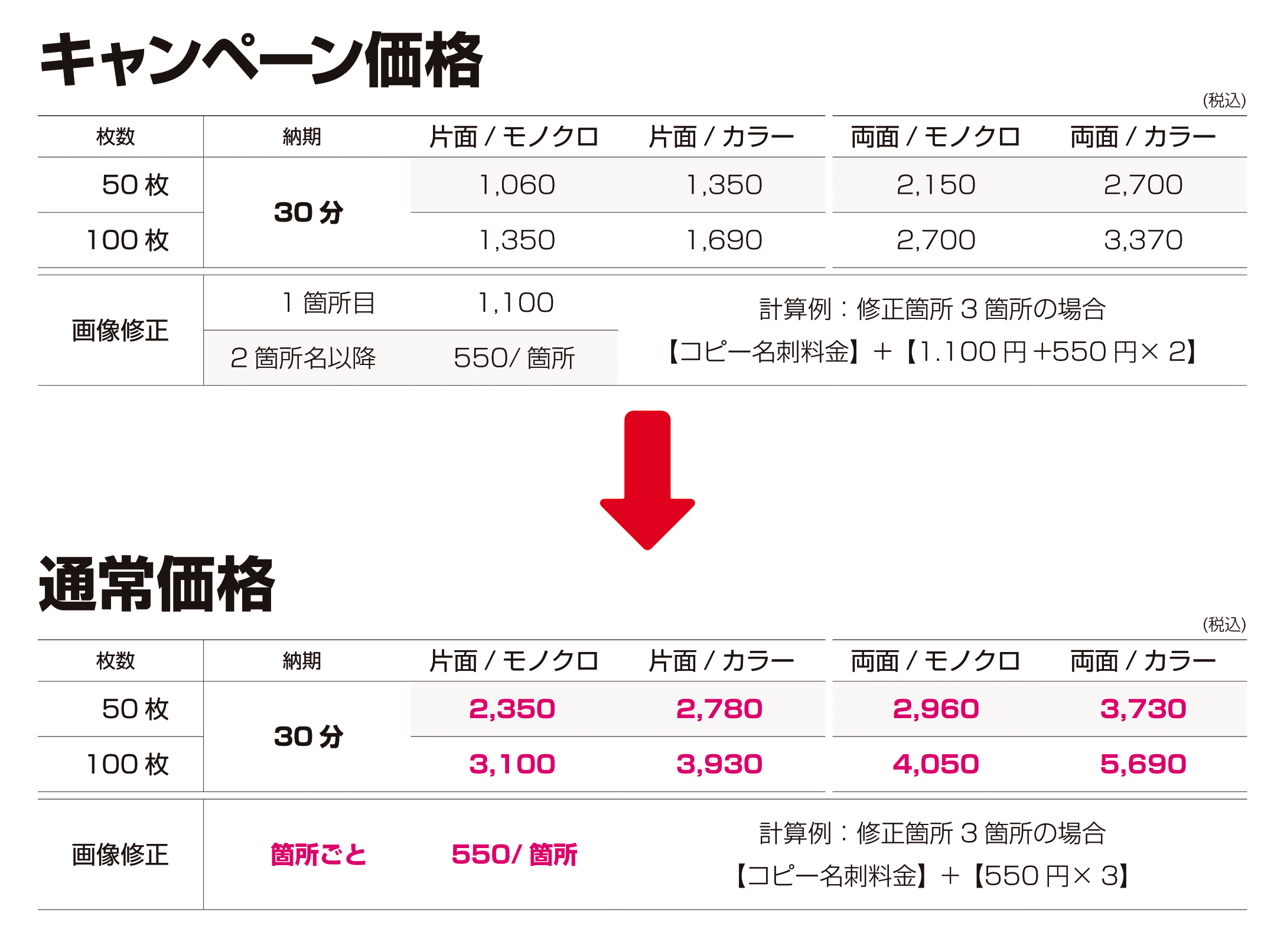 これまでコピー名刺作成サービスに関して、キャンペーン価格を据え置きでご提供させて頂いておりましたが、23年7月1日 をもって通常価格に戻ることになります。
